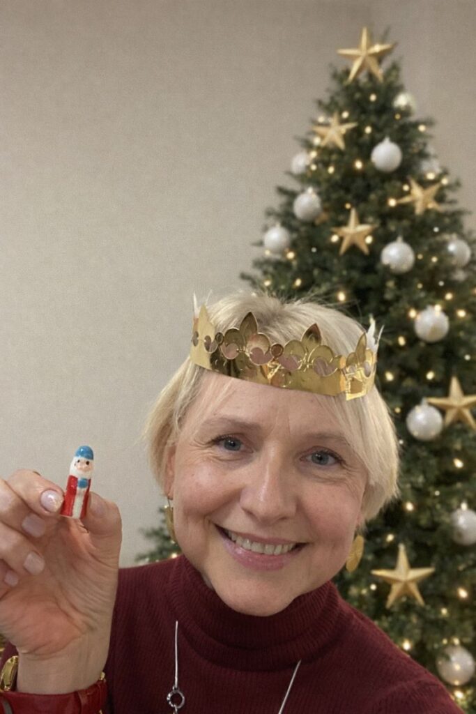 А все потому, что я взялась разрезать пирог и наткнулась на фигурку одного из Королей. Ну а раз я нашла короля — быть мне королевой по традиции 😁!
